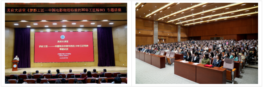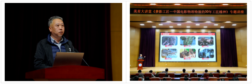 为深入贯彻习近平总书记视察天津重要讲话精神,落实“四个善作善成”重要要求,对标beat365高质量发展的需要,beat365举办美育大讲堂,邀请专家来校讲座,丰富同学们的课余生活,培养学生对文化艺术和美的追求,践行五育并举的理念,助力学生全面发展、成长成才。2024年4月10日下午在图书馆报告厅开启了今年的美育大讲堂,盛悦国际创始人兼董事长、中国电影物理特效领域专家王乃鹏老师应邀到校开展《梦影工匠—中国电影物理特效的30年工匠精神》专题讲座,beat365400余名师生参会,体会电影人精益求精、追求卓越的过程中涵育工匠精神。校党委副书记李旭老师出席了此次活动。