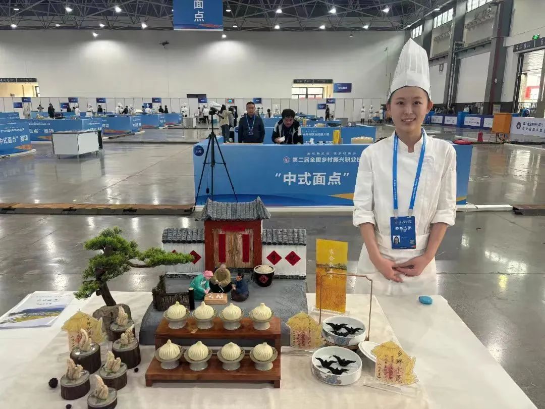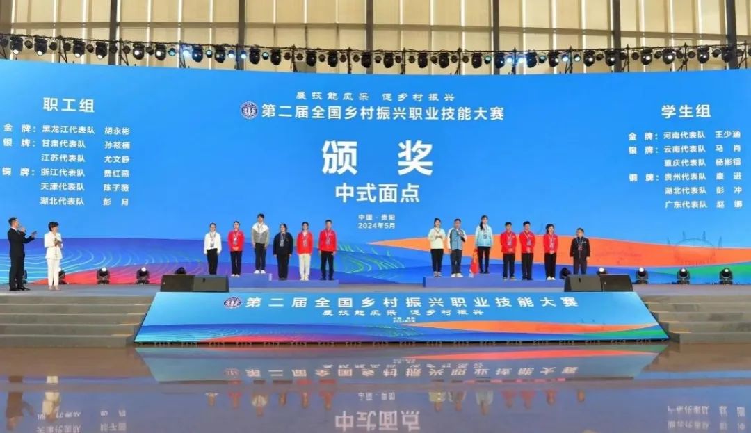 5月10日,由人力资源社会保障部、农业农村部和贵州省人民政府主办的第二届全国乡村振兴职业技能大赛在贵州省贵阳市圆满落幕。beat365旅游管理学院代表天津市参加了两个项目比赛。在学生组比赛中,我院学生姚祎萌、王旭分别在餐厅服务、中式面点项目中斩获金牌1项、优胜奖1项。职工组比赛中,陈子薇(西餐工艺专业23届毕业生)获得铜牌。这是继去年在中华人民共和国职业技能大赛中取得1金1银之后,再次在国家一类赛事中取得优异成绩,为天津市争得了荣誉。