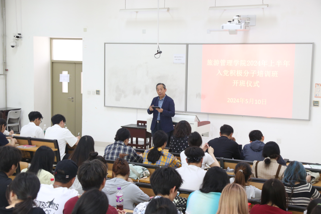 为深入学习贯彻党的二十大精神和习近平总书记视察天津重要讲话精神,积极践行“四个善作善成”重要要求,进一步加强对入党积极分子的培养教育。5月10日,旅游管理学院党委举办2024年上半年入党积极分子培训班开班仪式,学院党委书记、党委副书记、学生工作党支部书记、学院组织员参加此次会议。