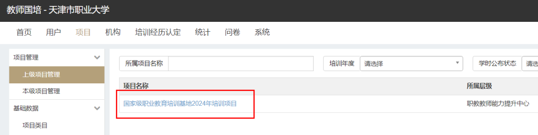 第三步:点击“国家级职业教育培训基地2024年培训项目”。