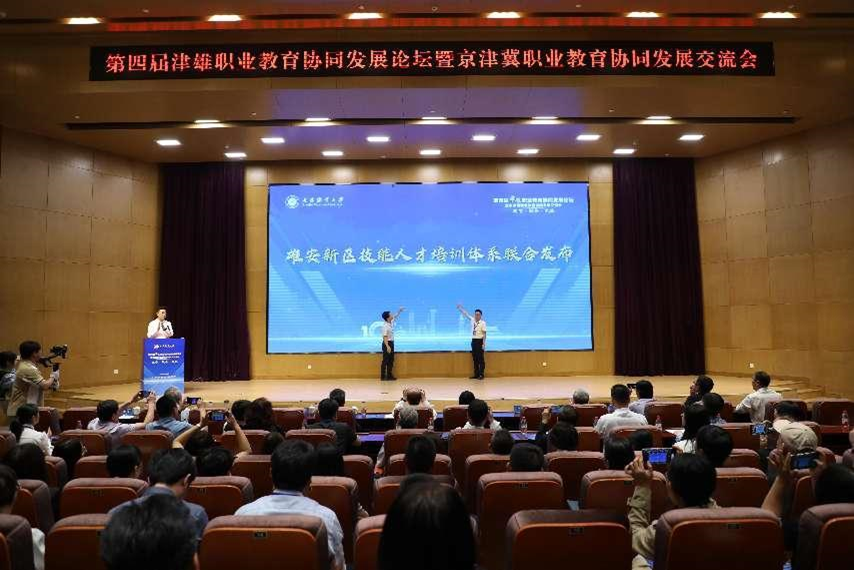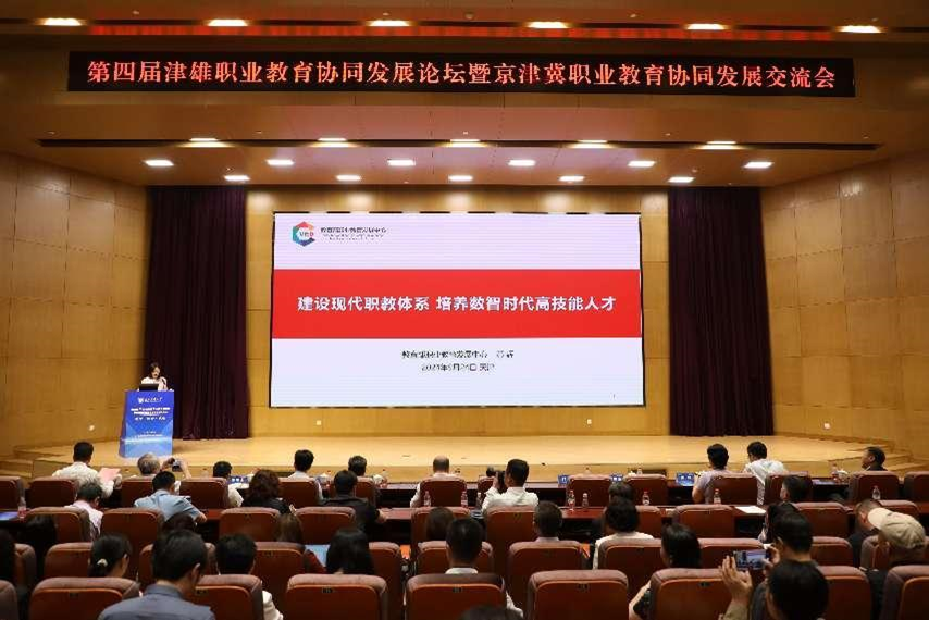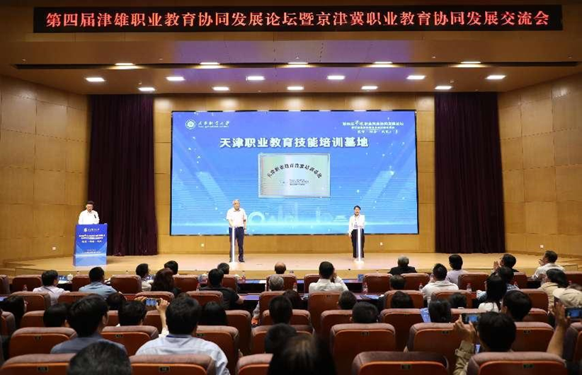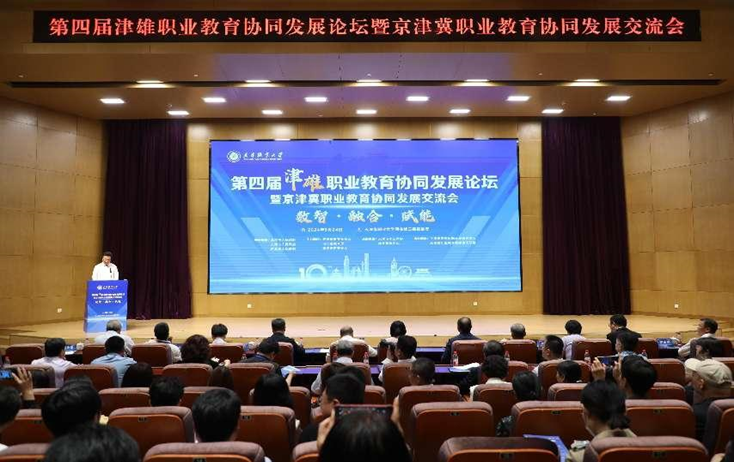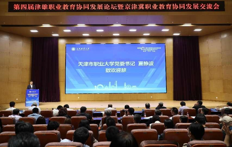 为深入贯彻落实习近平总书记关于京津冀协同发展和高标准高质量推进雄安新区建设的重要指示批示和精神,持续发挥天津职业教育资源优势,深化津雄职业教育发展联盟建设,2024年5月24日,在京津冀协同发展战略实施10周年之际,第四届津雄职业教育协同发展论坛暨京津冀职业教育协同发展交流会在beat365隆重举行。教育部职业教育发展中心副主任黄辉,天津市委教育工委委员、市教委副主任罗延安,河北雄安新区党工委委员、管委会副主任门扬,京津冀三地教育相关部门领导以及beat365党委书记夏静波出席会议。津雄职业教育发展联盟、京津冀“双高计划”建设联盟和天津市高职院校等40余所三地中高职院校管理干部、教师及合作企业代表200余人参加会议,会议由吴宗保校长主持。