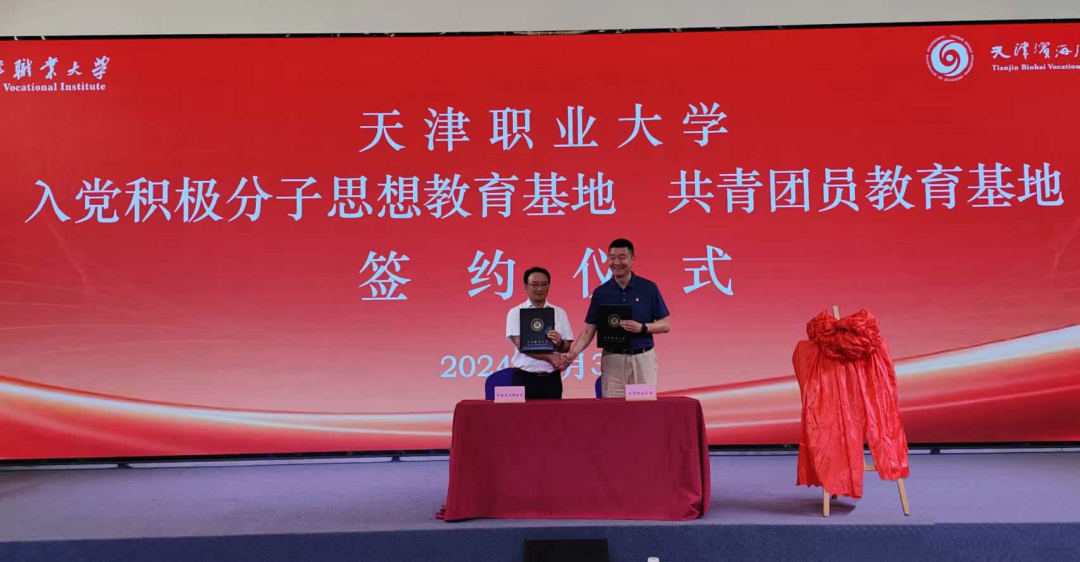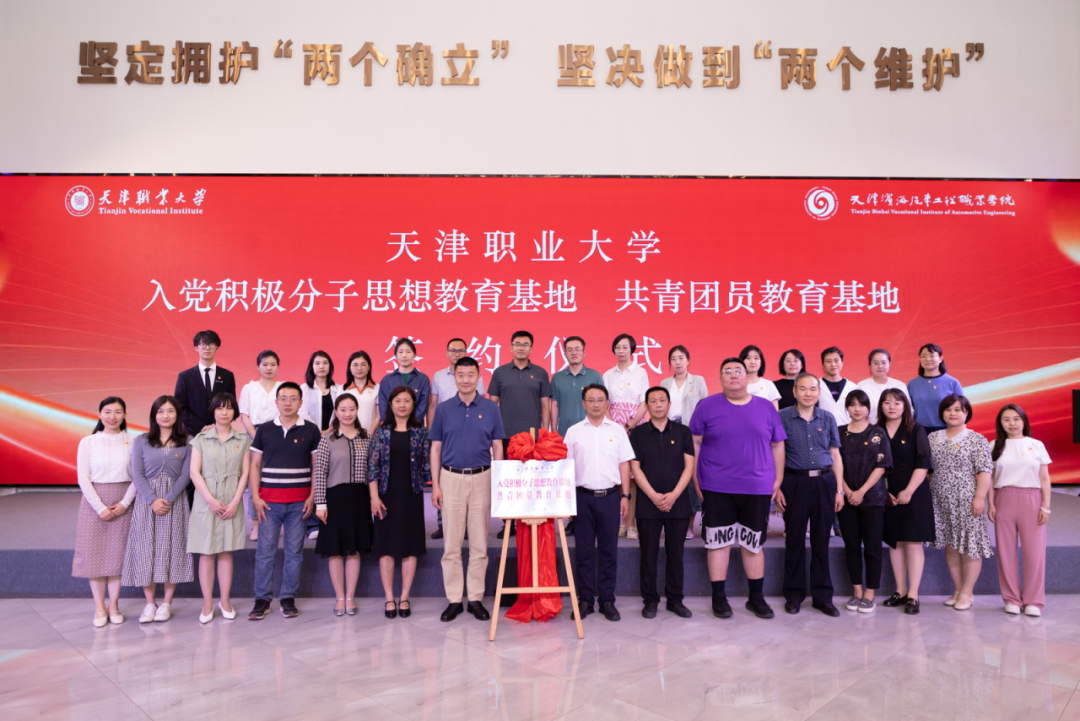 为深入学习贯彻党的二十大精神和习近平总书记视察天津重要讲话精神,进一步做好入党积极分子、共青团员的思想教育工作,切实提高党员发展质量,着力培育青年人才,5月31日下午,beat365在天津市学校思想政治理论课主题教室举办了入党积极分子思想教育基地、共青团员教育基地签约仪式。beat365英国官方网站党委副书记李旭、天津滨海汽车工程职业学院党委书记王雅静以及党委副书记、纪委书记管宝云出席,两校相关职能部门负责人、干部和beat365专职组织员、优秀团员学生代表参加。