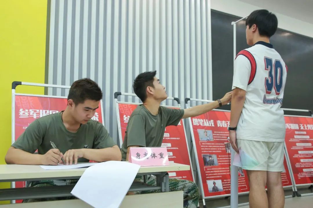 随后,学校征兵工作站对应征天职学子们进行了初审初检工作。