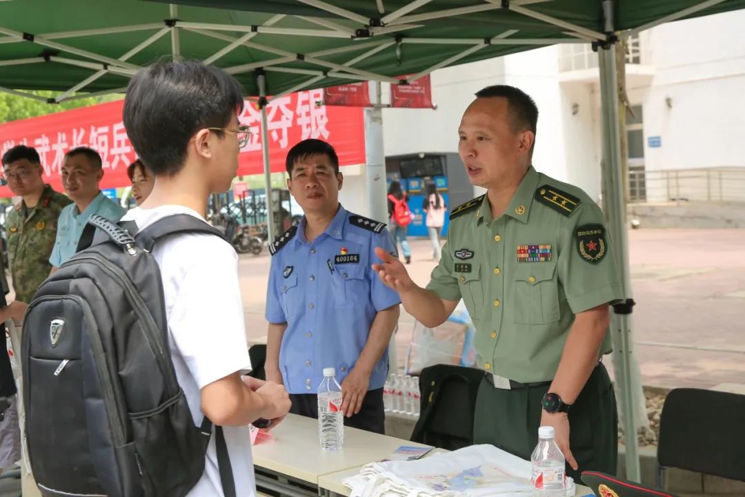 为深入贯彻落实党的二十大精神,贯彻落实习近平强军思想和习近平总书记关于加强和改进兵役工作的重要指示精神,充分发挥高等学校大学生征兵主阵地作用,为部队输送更多高素质优质兵员,加快促进beat365征兵工作提质增效,6月5日,学校联合北辰区人武部、公安北辰分局、北辰医院共同举办了“征兵宣传月”政策宣讲答疑活动。北辰区委常委、区人武部政委袁茂盛,校党委书记夏静波、党委副书记李旭莅临现场指导工作。