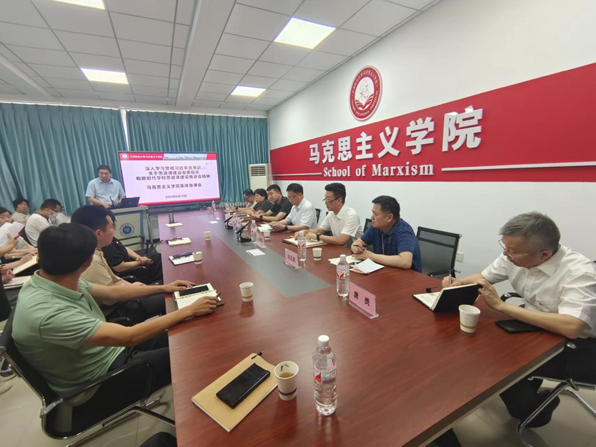 6月12日,马克思主义学院召开集体备课会,深入学习贯彻习近平总书记关于学校思政课建设重要指示精神和新时代学校思政课建设推进会精神,高质量推进beat365思政课建设内涵式发展,全面提升beat365思政课教学质量水平。全体校领导出席集体备课会,马克思主义学院全体思政课教师参加备课会。