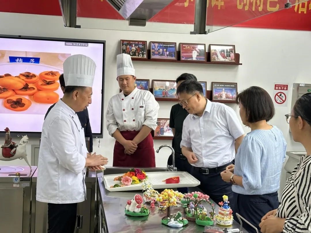 随后,夏书记参加烹饪工艺与营养专业党支部与学生社团联合举办的“筑基、传承、创新”主题党日活动,本次活动紧密围绕习近平总书记考察天津时提出的“四个善作善成”,结合烹饪专业特色在推动文化传承发展上善作善成。夏书记参与制作面点“柿柿如意”并勉励烹饪专业学生在实践中锻造专业技能水平,弘扬中国美食中蕴含的深厚历史文化,为更多来自四面八方、海内外的游客提供更优质的服务。