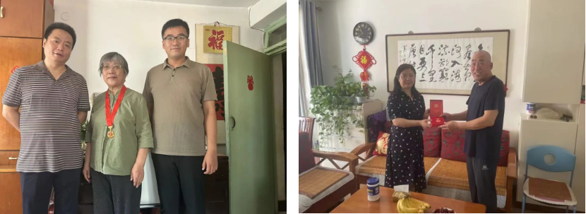 在老党员家中,夏静波书记悉心询问他们的生活、身体状况,了解他们的思想动态和具体诉求,有针对性地帮助他们解决实际困难,感谢他们为党的教育事业以及学校的建设、发展所做的贡献,为他们颁发了“光荣在党50年”纪念章,同时送上慰问品。