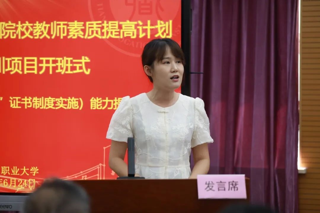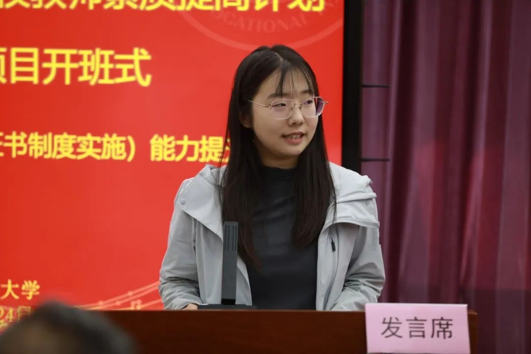 随后,岗课赛证综合育人(“1+X”证书制度实施)能力提升项目、中职课程实施能力提升项目、海河名师访学项目的学员代表依序发言,表示一定以饱满的热情和积极的心态投入到学习和实践中,努力吸收和消化培训内容,结合工作将理论知识转化为教学实践,不断提升自己的综合素质,助力职业教育高质量发展。