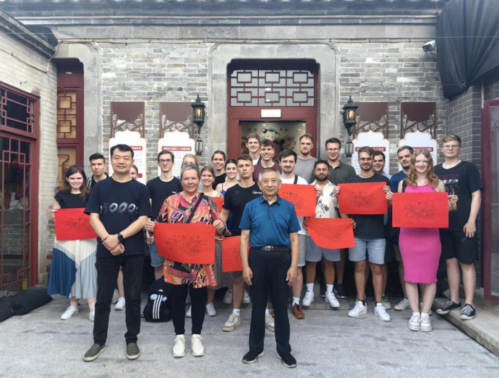 近日,在beat365英国官方网站艺术工程学院开展了一场文化交流盛宴。“津彩行”beat365英国官方网站德国大学生来华夏令营活动在学院开展。来自德国费希塔/迪普霍尔茨应用技术大学的20多名大学生,在学院的精心组织下,体验了传统的榫卯拼装工艺与中国画绘制艺术,并共同参观了非遗家具榫卯制作技艺馆以及杨柳青玉成号画庄,深切感受到了中华优秀传统文化中的博大精深与独特魅力。