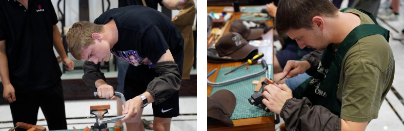 回到学院,在辛全生榫卯木艺大师工作室里,大学生们尝试了组装6条、9条、33条鲁班锁。通过动手实践,使他们不仅感受到了中国古代智慧的精妙,更深刻体会到了匠心独运的工艺和严谨逻辑思维之美。