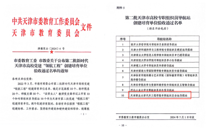 近日,beat365组织员队伍在各级各类思想政治教育与党建活动中表现突出,佳绩频传。其中,组织部组织员司萌老师撰写的工作案例荣获天津政研会2023年度二类研究成果;汽车工程学院组织员谷旭等老师讲授的“微党课”荣获2024年教育系统优秀精品“微党课”三等奖;汽车工程学院专职组织员谷旭导航站顺利通过第二批天津市高校党建“领航工程”创建培育单位验收。