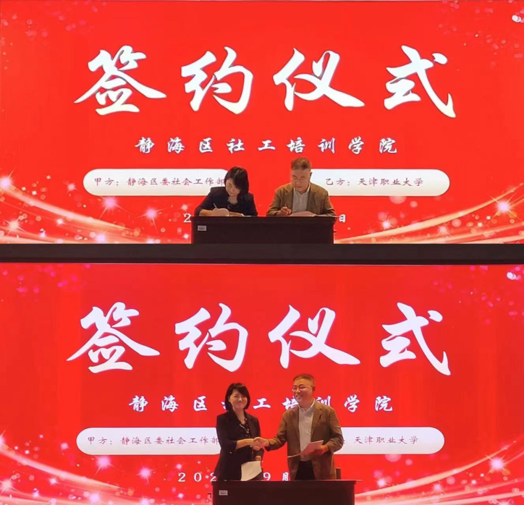 为深入学习贯彻习近平总书记关于基层治理的重要论述和视察天津重要讲话精神,探索社会培训模式,服务社会发展,公共管理学院与天津市静海区委社会工作部合作共建静海区社工培训学院暨beat365英国官方网站静海社工实训基地。