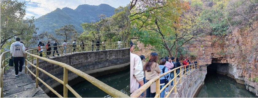 次日清晨,党员们踏上青年洞之旅,亲身体验走千里“水长城”的壮举。青年洞不仅是红旗渠的标志性工程,更是共产党人坚韧不拔、勇于开拓的象征。党员们沿着崎岖的山路前行,每一步都踏着先辈的足迹,感受着那份沉甸甸的历史责任感。经过两个多小时的徒步,党员们终于抵达青年洞。此次体验教学让党员们深刻理解了红旗渠精神的内涵,深刻体会到自力更生、艰苦创业、团结协作、无私奉献的力量。