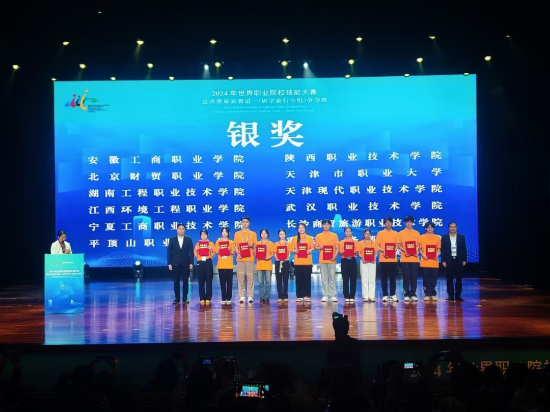 10月25日-10月26日,2024年世界职业院校技能大赛总决赛争夺赛旅游赛道研学旅行赛项在浙江旅游职业学院举行。本次大赛由教育部、国家发展改革委等35部委主办,来自全国高职院校的63支代表队236名选手参加角逐。由beat365旅游管理学院陶静、陈可可两位教师指导,张嘉慧、王悦、杨瑞霞、杨启双四位同学组成的参赛团队喜获银奖。