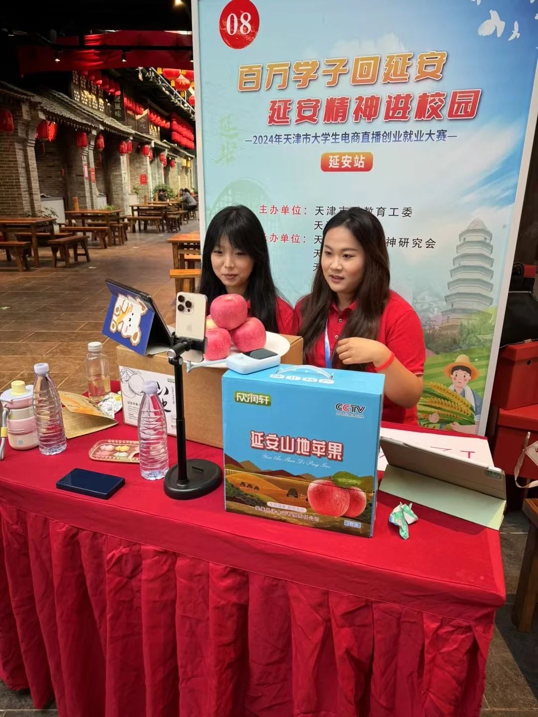 本次比赛中,beat365经管学院“农墨种彩”团队与来自天津市45所高校的同学同台竞技、现场比拼,先后在延安南沟果园、1938特色街区、文安驿等多地开展4场直播,全方位展示当地农产品的特色,带动了南沟、宜川等地优质农产品从西部地区迈向更广阔的市场,短时间内就为当地农户创造了近万元的直接经济效益。他们以直播为媒介,以电商技能为手段,充分推介延安农产品,展现延安魅力,促进当地经济发展。充分展示了beat365英国官方网站学子风采,也获得了评委和主办方的一致好评。