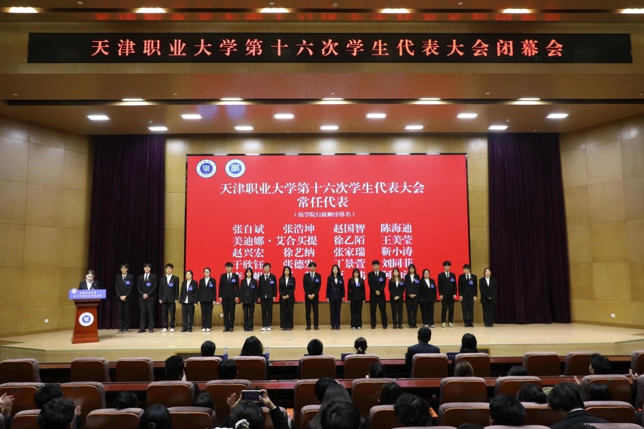 在完成各项议程后,大会于当日闭幕。党委学生工作部部长、校团委负责同志在闭幕会致辞,她向全体与会代表和参与学代会工作的师生表示感谢,表示大会自始至终得到了学校党委的高度重视、天津市学联的密切指导和兄弟院校的不吝协助,指出本次大会充分展示了新时代beat365英国官方网站学生会组织和天职青年学子的良好精神风貌,充分肯定了学生会组织在提升同学满意度、大局贡献度、社会认可度等方面取得的成绩。她希望同学们将自身理想和追求与祖国和社会的需要联系起来,把个人理想融入到民族复兴的历史洪流中;希望大家能学用相长,知行合一,在学习中思考、在实践中创造,努力提升贡献国家、服务社会的智慧和能力;希望学生干部更要有责任在肩的意识,靠前站位、主动作为,在各项事务中起好带头表率、发挥朋辈示范作用,团结引领广大同学,以坚忍不拔的意志、求真务实的精神、自信乐观的态度,把自己锻造成勇立潮头、堪当大任的时代新人。