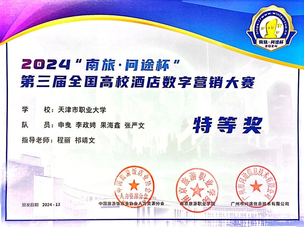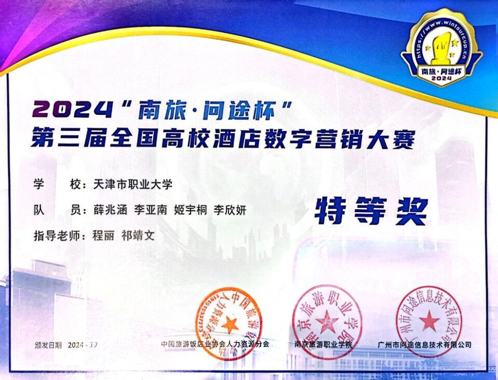 热烈祝贺旅游管理学院在2024“南旅•问途杯”全国高校酒店数字营销大赛中获得两个特等奖!