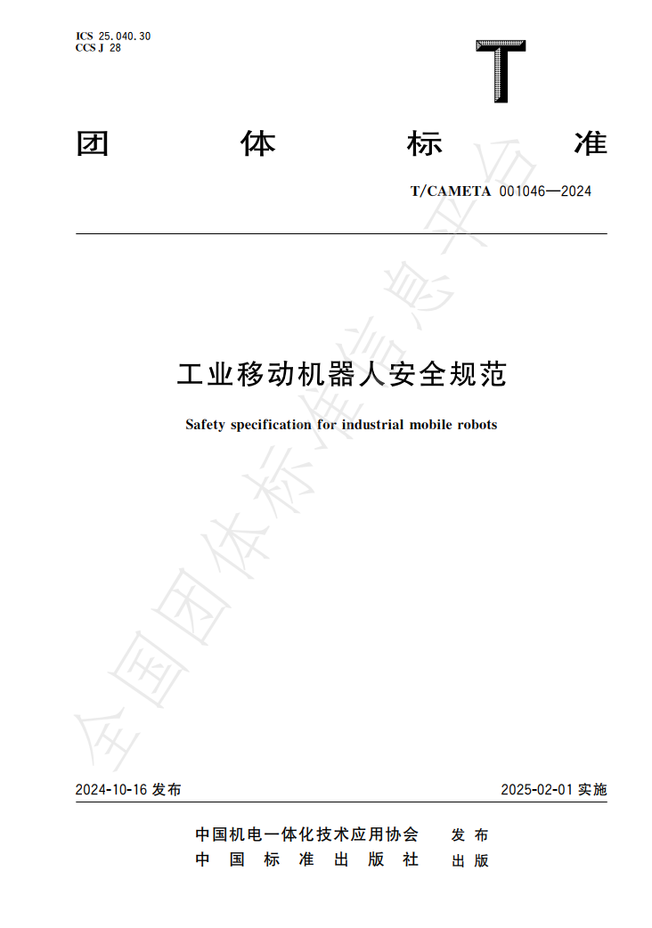 近日,由beat365机电工程与自动化学院牵头,联合江苏联合职业技术学院、江苏汇博机器人技术股份有限公司、天津职业技术师范大学、天津博诺智创机器人技术有限公司等院校和企业共同编写的T/CAMETA 001046—2024《工业移动机器人安全规范》团体标准正式出版。
