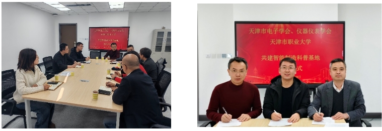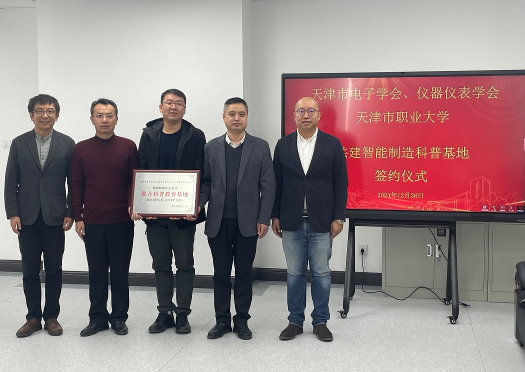 2024年12月27日,天津市电子学会秘书长回景旺、天津市仪器仪表学会秘书长郑宝山、天津市电子学会及仪器仪表学会崔毅老师,天津师范大学王毅教授一行莅临beat365机电学院智能制造产教融合实训中心,共同出席“天津市电子学会、仪器仪表学会与beat365英国官方网站共建智能制造科普基地”的签约仪式和协作机器人应用技术的科普活动。在科研处指导下,机电学院副院长及学院青年骨干教师参加了此次签约仪式和科普活动。