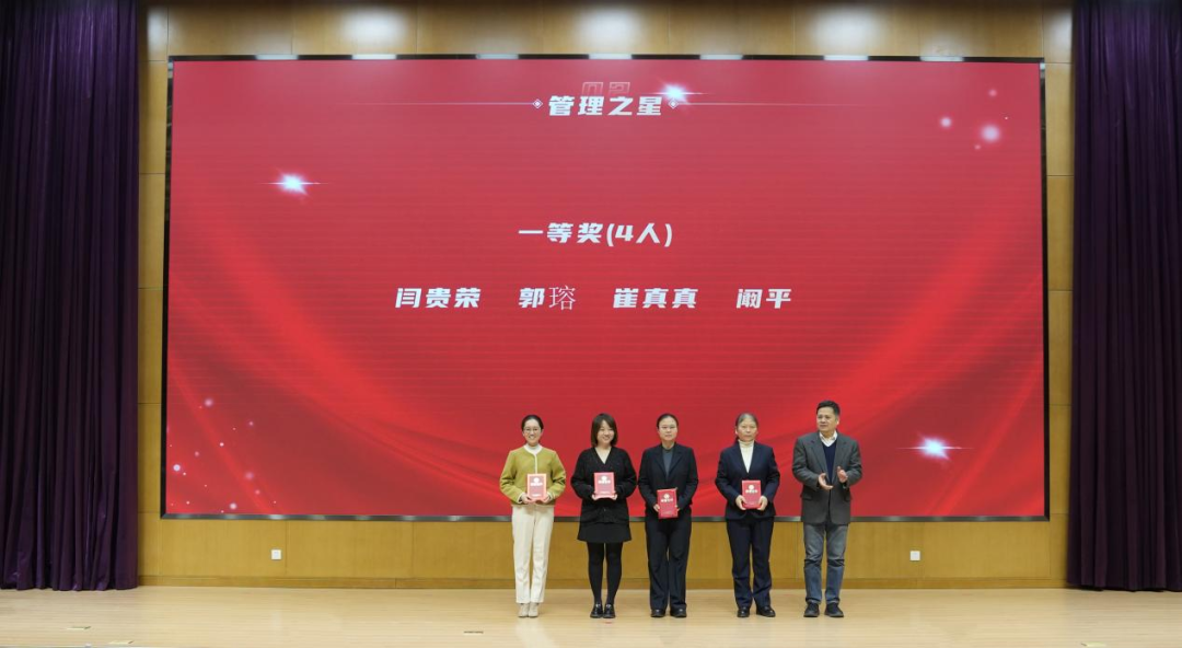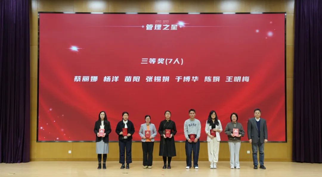 在表彰与颁奖环节,现场气氛热烈而庄重。“育人之星” 奖项率先揭晓,超星集团联合创始人阙超先生、校纪检书记唐勇、副校长冯艳文分别为获得一等奖、二等奖、三等奖的教师颁发证书,以表彰他们在教学工作中的杰出表现。紧接着,“管理之星” 个人奖和团队奖依次颁发,校党委书记夏静波、校长吴宗保、副校长刘石英分别为获奖团队和个人颁发证书与奖杯,充分肯定了他们在教学管理工作中的卓越贡献和创新实践。