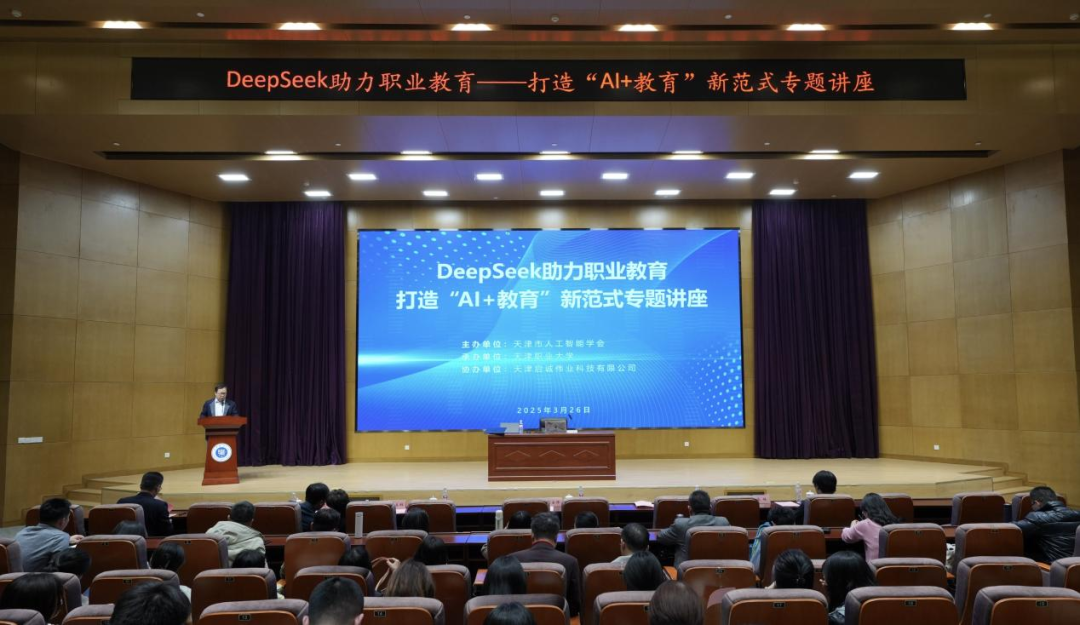 为贯彻落实《教育强国建设规划纲要(2024-2035年)》精神,深入推进教育数字化战略行动,促进人工智能与教育教学深度融合,引导教师主动适应新技术变革,探索教学新范式与创新教学实践,3月26日下午,beat365在图书馆报告厅举办 “DeepSeek助力职业教育——打造‘AI+教育’新范式”专题讲座,副校长冯艳文出席,职能处室、各教学院(部)教师代表400余人参加。活动由教务处负责人主持。