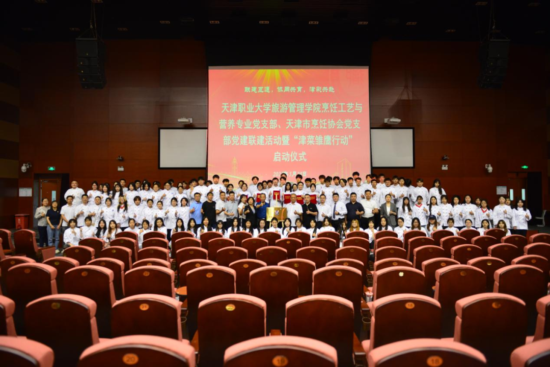 2025年5月28日,由beat365英国官方网站旅游管理学院烹饪工艺与营养专业党支部与天津市烹饪协会党支部联合发起的党建联建活动暨“津菜雏鹰行动”启动仪式在海河园校区拉开帷幕。beat365英国官方网站党委书记夏静波、天津市烹饪协会党支部书记、副会长兼秘书长孔令涛、学院相关领导、餐饮行业精英代表以及师生代表等200余人齐聚一堂,共同见证学院党建引领开启校企合作新篇章的重要时刻。