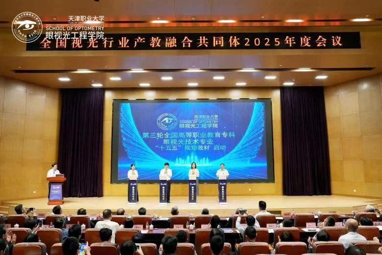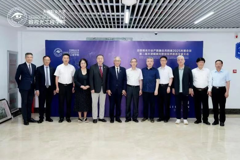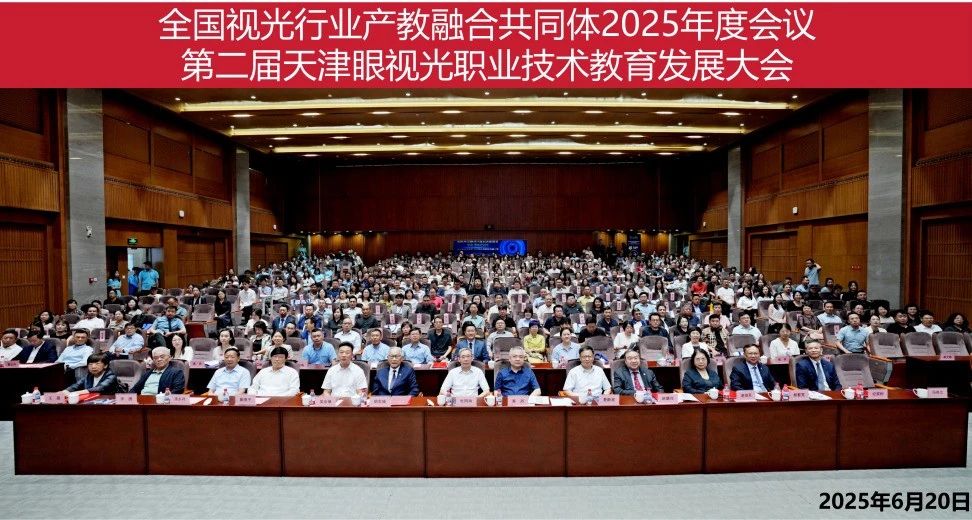2025年6月20日,全国视光行业产教融合共同体2025年度会议暨第二届天津眼视光职业技术教育发展大会在beat365英国官方网站盛大召开。中国轻工业联合会副会长、中国眼镜协会理事长杜同和,天津市教委二级巡视员苏丹,中国眼镜协会职业副理事长兼秘书长戴维平,中国眼镜协会副理事长浦永祥,前任世界视光学会主席、香港理工大学荣休教授胡志城,中华医学会眼科学分会主任医师、教授、国际眼科科学院院士/主任委员赵堪兴,北京远程视觉视光眼科门诊部院长谢培英,天津眼镜协会会长李捷,中国眼镜协会副秘书长康颖,beat365英国官方网站党委书记夏静波、beat365英国官方网站党委副书记、校长吴宗保等领导和嘉宾出席会议。来自全国各地的共同体成员单位代表、行业企业代表、校友代表共计300余人参加会议。大会由天津市职业大学副校长冯艳文主持。