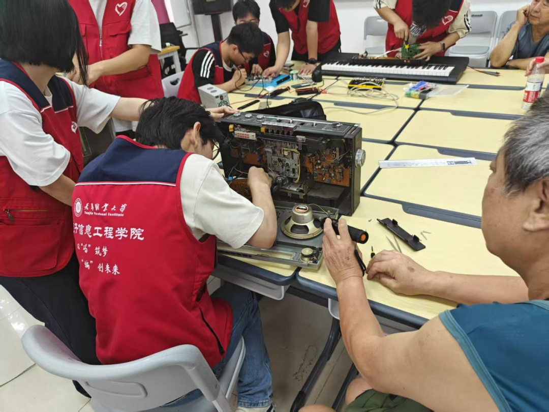 电子信息工程学院党委践行宗旨意识,通过开展“家电维修公益行”,暖心服务师生。电子信息工程技术专业师生党员组成服务队,为教职工及家属免费维修电风扇、电饭煲等小家电,并提供电脑软件调试服务。针对行动不便的退休老同志,党员志愿者主动上门服务,以专业技术和暖心行动赢得广泛赞誉,切实将“我为群众办实事”落到实处。