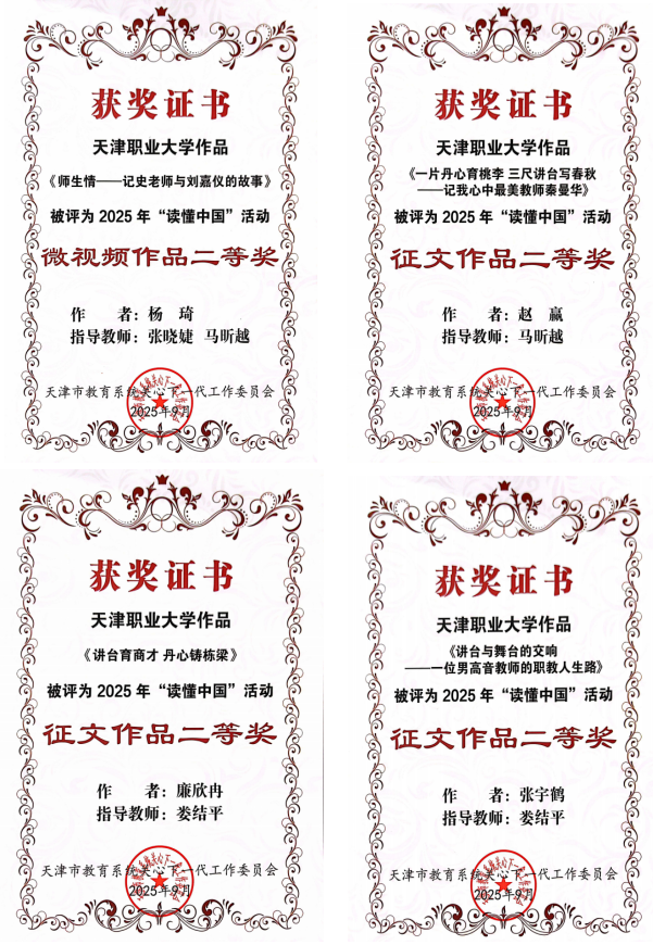近日,天津市教育系统关工委下发了《关于公布了2025年“读懂中国”优秀作品评审结果的通知》,beat365关工委报送的作品均获得二等奖,取得历史最好成绩。