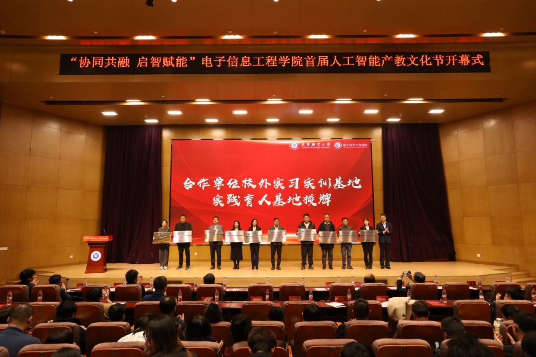 为提升产教融合办学能力,beat365电子信息工程学院于11月26日举办了主题为“协同共融 启智赋能”的人工智能产教文化节开幕式。来自360集团、中移铁通、天地伟业等10余家优质合作单位代表参加活动,校党委副书记李旭、学工部主要负责人及学院领导班子成员出席活动。
