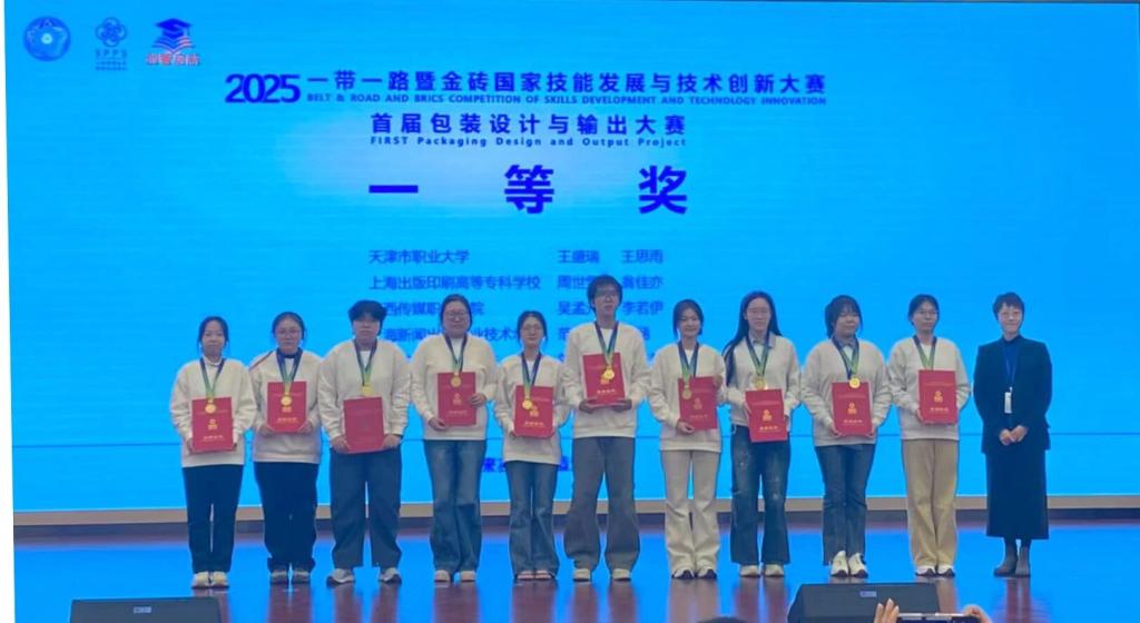 2025年11月29日,“2025一带一路暨金砖国家技能发展与技术创新大赛—首届包装设计与输出大赛”全国总决赛在上海新闻出版职业技术学校圆满落幕,来自全国的45支代表队在包装设计与印刷输出的专业赛道上同台竞技,以精湛技艺践行工匠精神。beat365包装与印刷工程学院23级图文专业王盛瑞、23级包装专业王思雨两位同学凭借扎实的专业功底、默契的协作能力和创新的设计理念,从全国众多中高职及本科院校参赛队伍中脱颖而出,成功斩获赛项一等奖第一名,指导教师徐朋飞获评“优秀指导教师”,彰显了beat365在包装印刷、图文设计领域的教学实力与人才培养成效。