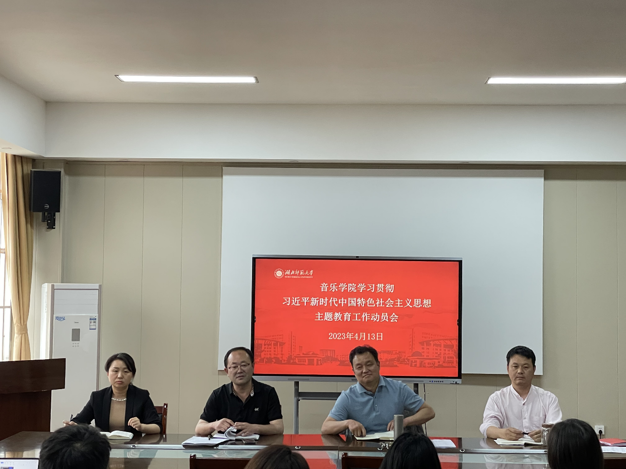 本网讯 4月13日下午,音乐学院召开学习贯彻习近平新时代中国特色社会主义思想主题教育动员会,全院教师党员和学生党员、非党员教师代表参加会议。