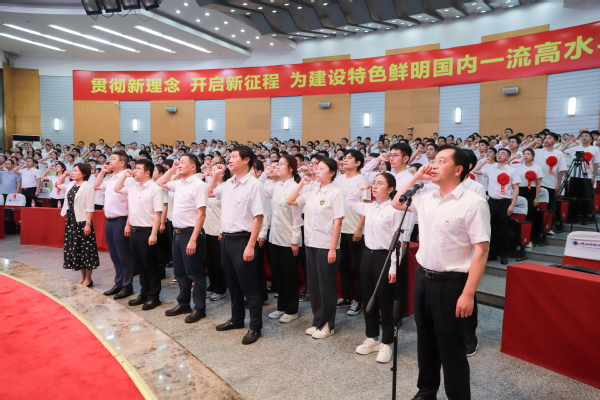 大会在雄壮的国歌声中开幕。“我志愿加入中国共产党,拥护党的纲领,遵守党的章程……随时准备为党和人民牺牲一切,永不叛党!”在校党委常委肖六亿的领誓下,新党员代表进行了入党宣誓,与会全体党员重温入党誓词。