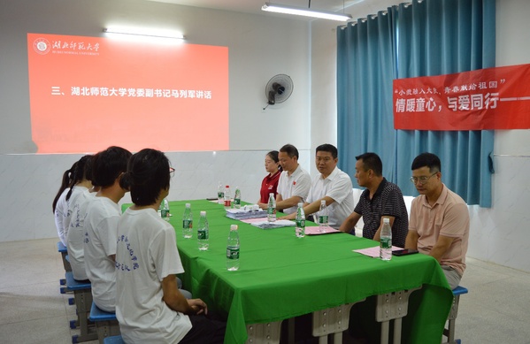 本网讯 7月12日,校党委副书记马列军前往阳新县富池镇慰问“爱童行”支教志愿者实践队队员。历史文化学院领导班子、辅导员老师、学院师生代表、王曙小学校长和王曙村副主任参加了此次活动。